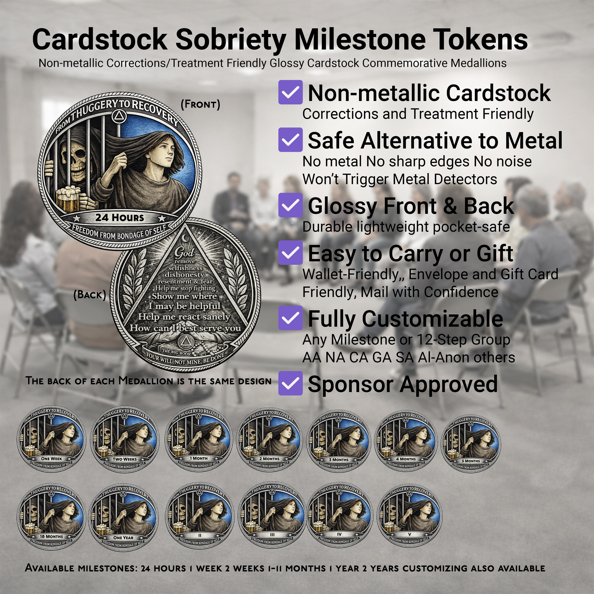 From Thuggery to Recovery Set of 20 Cardstock AA Milestone Medallion Commemorative Tokens